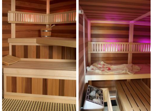 Конструкция кабин сборная, внутренняя отделка выполнена исключительно из красного канадского кедра, материала обладающего антисептическими свойствами и неповторимым ароматом эфирных масел, содержащихся в нем. Уникальное оптическое свойство канадского кедра отражать большую часть тепловых лучей позволяет добиться эффективного и равномерного распространения тепла внутри кабины. По праву считается лучшим из существующих материалов для любых саун.
