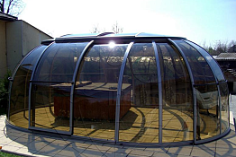 Роскошные Gazebo изготавливаются в основном из алюминиево-пластиковых панелей или красного кедра (лак), обладают водонепроницаемостью, влагостойкостью и защитой от солнечных лучей, что позволяет устанавливать их на открытых площадках.