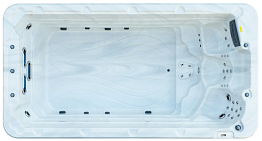 На посадочных местах, выполненных в виде ступеней, размещены встроенные гидромассажные форсунки. По сути, это отдельная СПА-зона, которая служит прекрасным дополнением данной модели плавательной СПА.